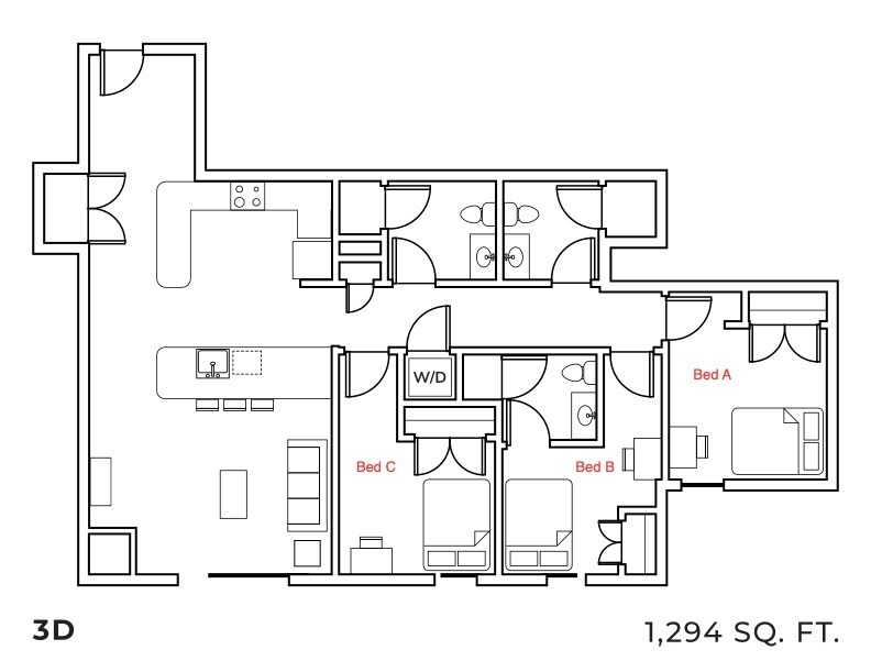 Apartment Model: 3D3 Bedroom, 3 Bath, 1293 sq ftUnavailable![]()