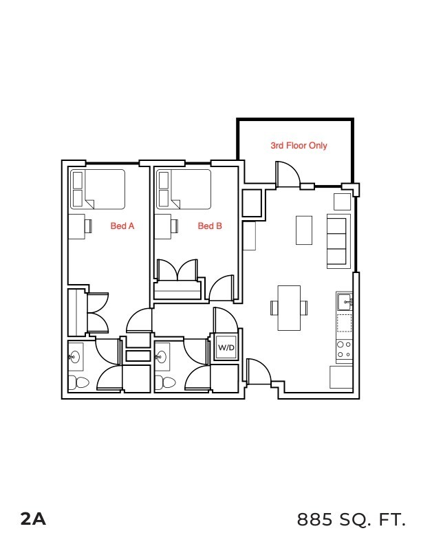 Apartment Model: 2A2 Bedroom, 2 Bath, 885 sq ftUnavailable![]()