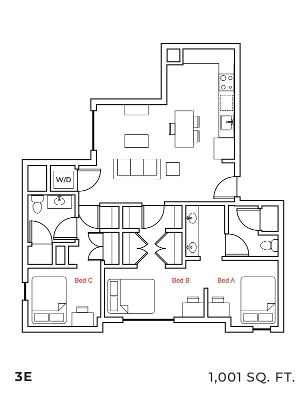 Apartment Model: 3E3 Bedroom, 2 Bath, 1001 sq ftUnavailable![]()