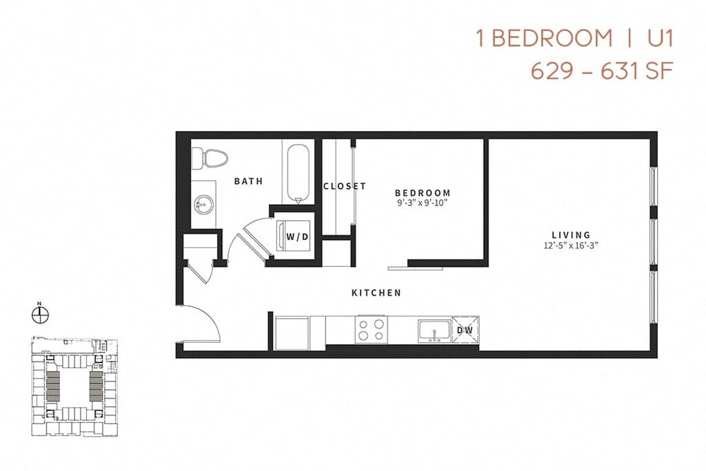 1 Bed, 1 Bath, 612-658 sq ftAvailable NowModel Gallery