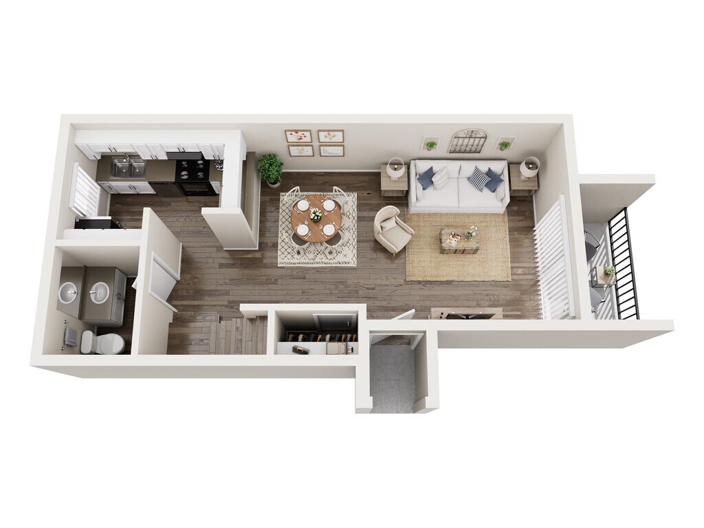Apartment Model: One Bedroom One Bathroom B$2,2101 Bedroom, 1 Bath, 725 sq ftAvailable Now- Floor plans are artist's rendering. All dimensions are approximate. Actual product and specifications may vary in dimension or detail. Not all features are available in every rental home. Prices and availability are subject to change. Base rent is based on monthly frequency. Additional fees may apply, such as but not limited to package delivery, trash, water, amenities, etc. Deposits vary. Please see a representative for details. ![]() - One Bedroom One Bathroom B - Floorplan 1
