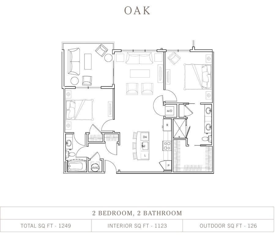 Archibald B - Floorplan 1 Apartment Unit: 201Apartment Model: Archibald B$3,5072 Bedroom, 2 Bath, 1188 sq ftAvailable January 23, 2026The Oak
