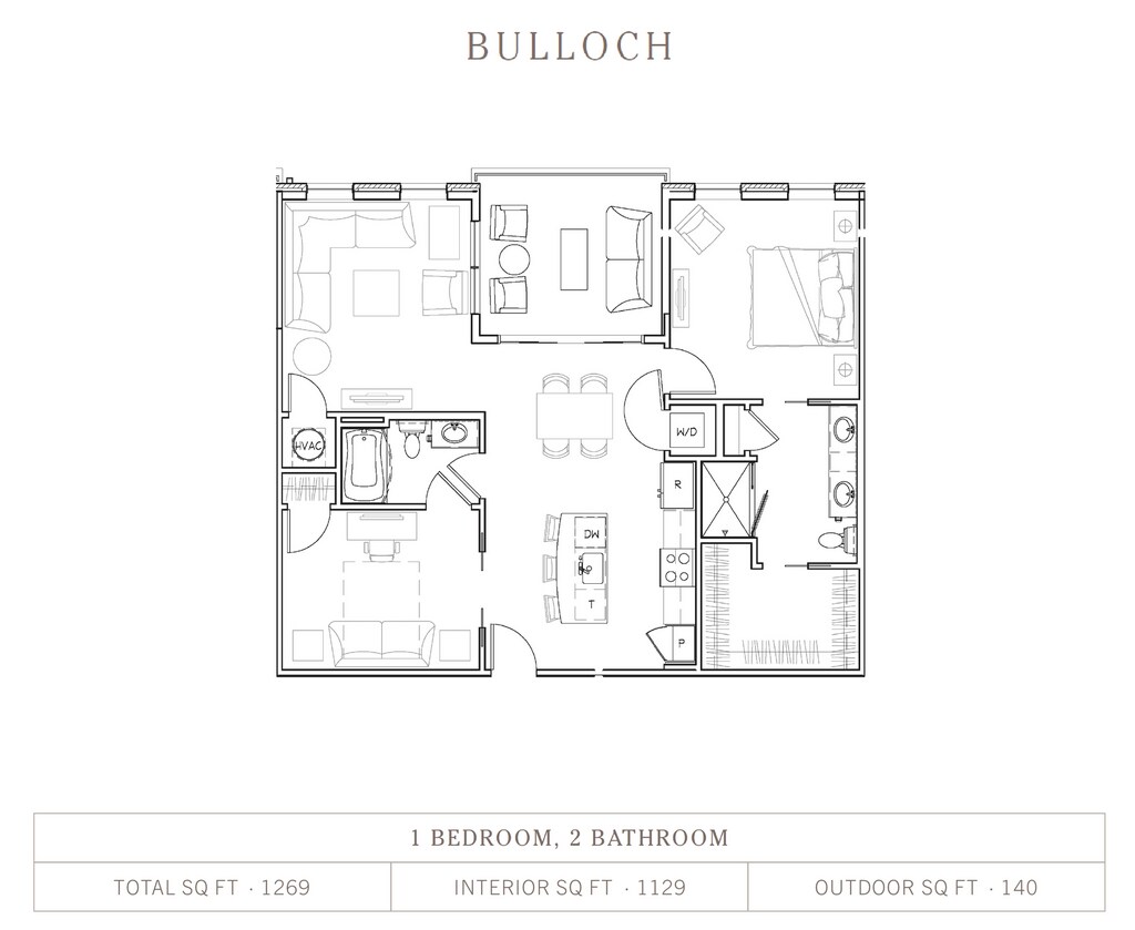 Bulloch - Floorplan 1 Apartment Unit: 233Apartment Model: Bulloch$3,4581 Bedroom, 2 Bath, 1170 sq ftAvailable NowBulloch A