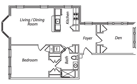 1 Bedroom - Floorplan 1 1 Bedroom w/Den