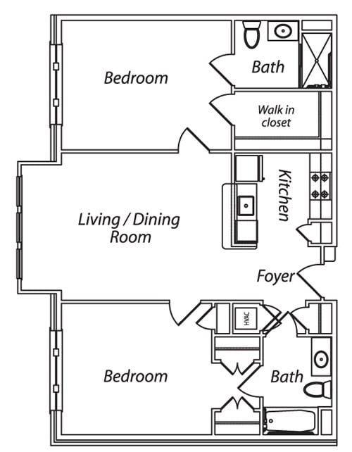 2 Bedroom, 2 Bathroom - Floorplan 1