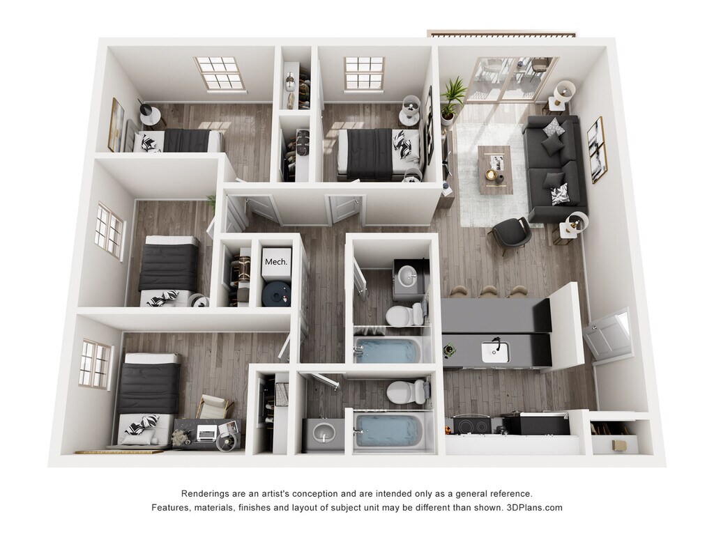 4BR/2BA - Floorplan 1 Apartment Unit: PrivateApartment Model: 4BR/2BA$1,1004 Bedroom, 2 Bath, sq ftAvailable NowApartment Unit: PrivateApartment Model: 4BR/2BA$1,1504 Bedroom, 2 Bath, sq ftAvailable August 20, 2026