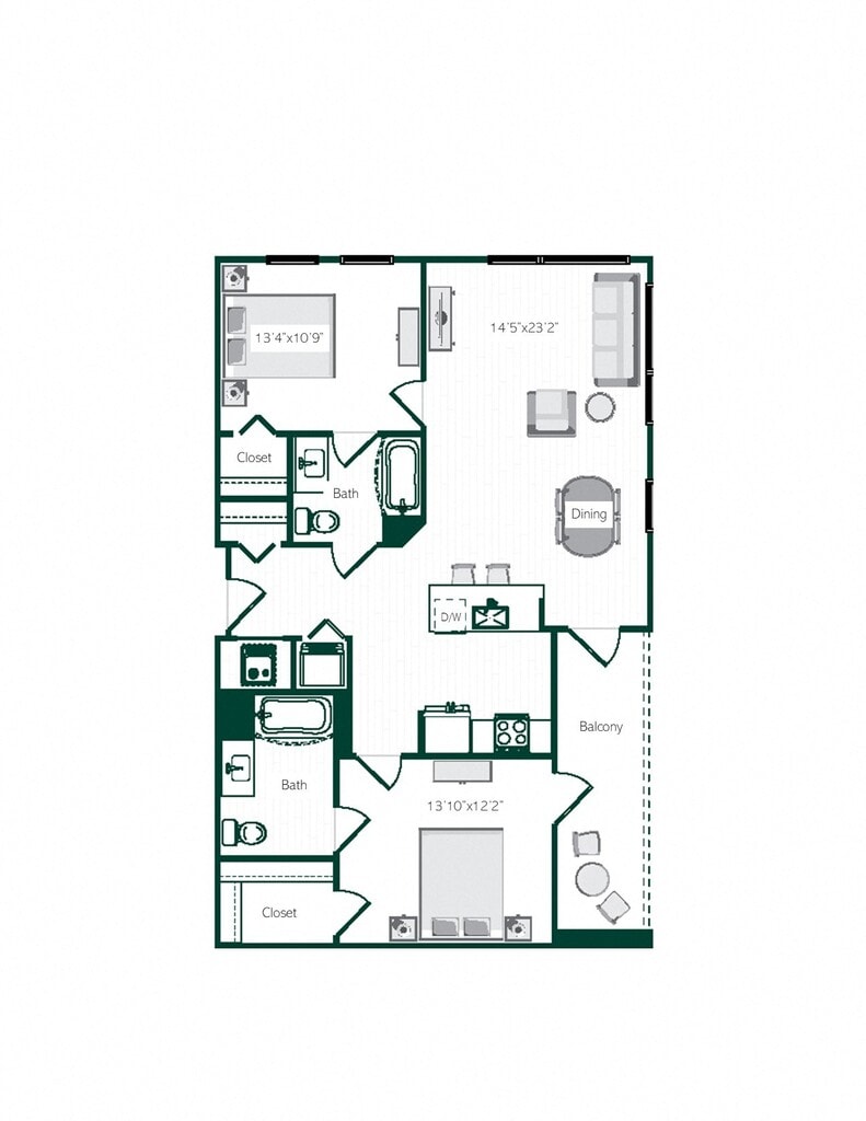 1 Bed, 1 Bath, 713 sq ftAvailable NowModel Gallery