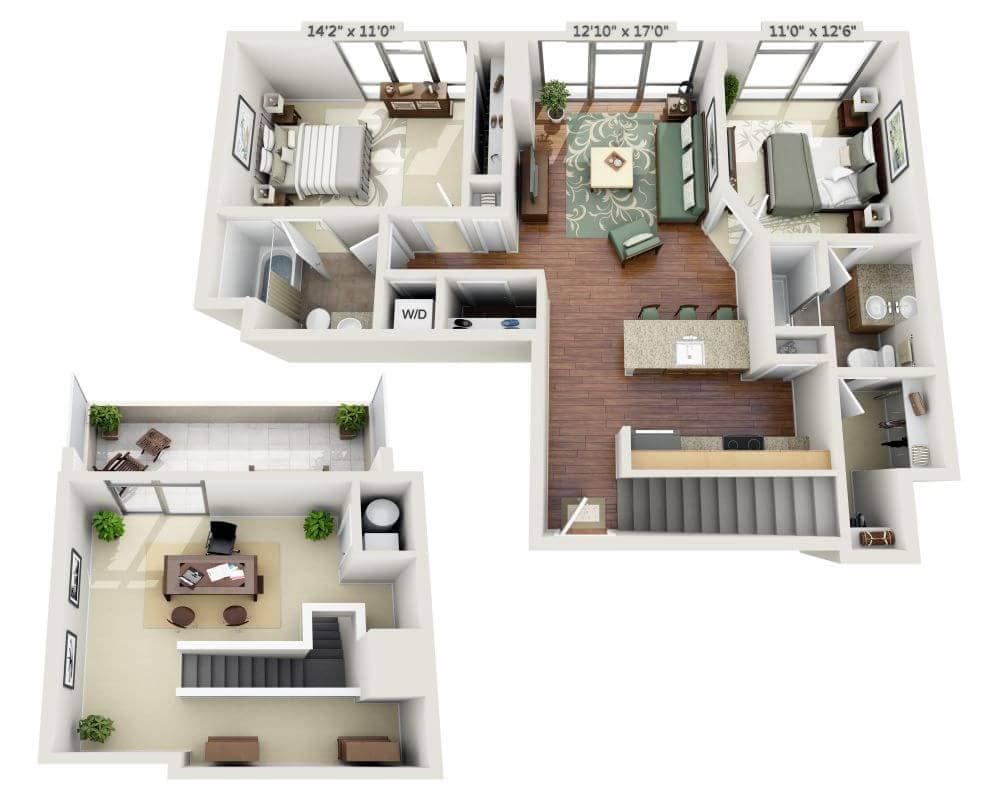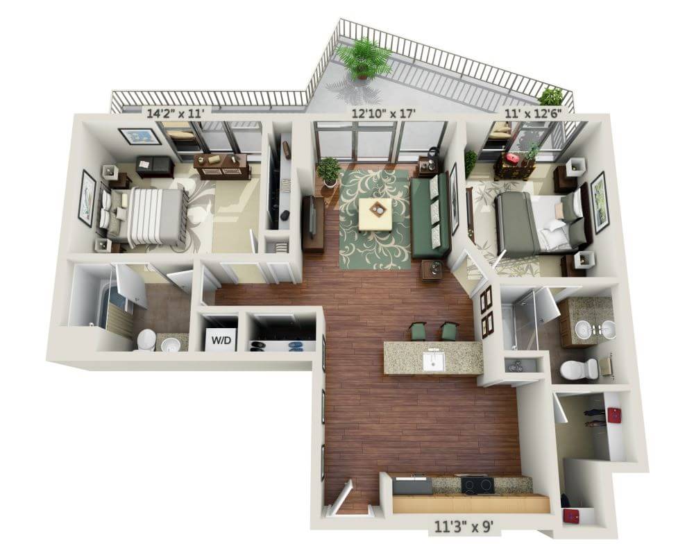 View 14 offers Studio to 2 Bedroom apartments starting from $2,116 and having 460–1,692 sq ft. Here is the current pricing and availability: