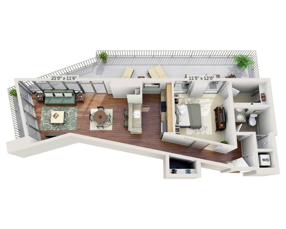 One Bedroom A1D - Floorplan 2 Apartment Unit: N/A-506Apartment Model: One Bedroom A1D$2,3981 Bedroom, 1 Bath, 708 sq ftAvailable NowFloorplansPhotos![]()
