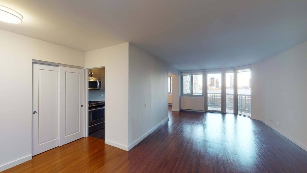 August 1, 2015Beautiful renovated granite countertops large living room looking down the East river. Watching the pontoon boats land all the time. Helicopter pad right out front but windows are soundproof. Helicopters start at 8 and end about 7. Really only going at rush hour. Cool to look at at 1st but then become annoying with balcony use. Building has every amenity from business office (conference rooms and computers for you) to play rooms for children. Large room w kitchen to hold party for 50 rooftop ...deck and screening room w huge tvs and comfy chairs. No laundry in room but plenty on 2nd fllr (pay) and a valet in building you can drop off or they pick up dry cleaning and laundry if u like. Doorman and concierge. North and south towers a very large very NEW YORK operation so don't expect perfection but it's good especially for the price. I pay 3,900 for a large 1 bdrm w balcony 11th floor. Many younger people put up petitions and turn it into 2 bedrooms. Looks of models in building it seems or just good looking people lots of little perks for living here to. Card to get in bars w/o waiting in line or free drinks discounts at restaurants. Also east river taxi (downtown and Brooklyn) and ferry to nj beaches or Martha's Vineyard Yankee games right across street.Read MoreReview from Apartments.com