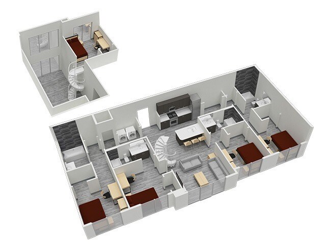 E4 Premium - Floorplan 1 Apartment Unit: PrivateApartment Model: E4 Premium5 Bedroom, 5 Bath, 1757 sq ftAvailable August 14, 2026Apartment Unit: Private LoftApartment Model: E4 Premium5 Bedroom, 5 Bath, 1757 sq ftAvailable August 14, 2026Wilson