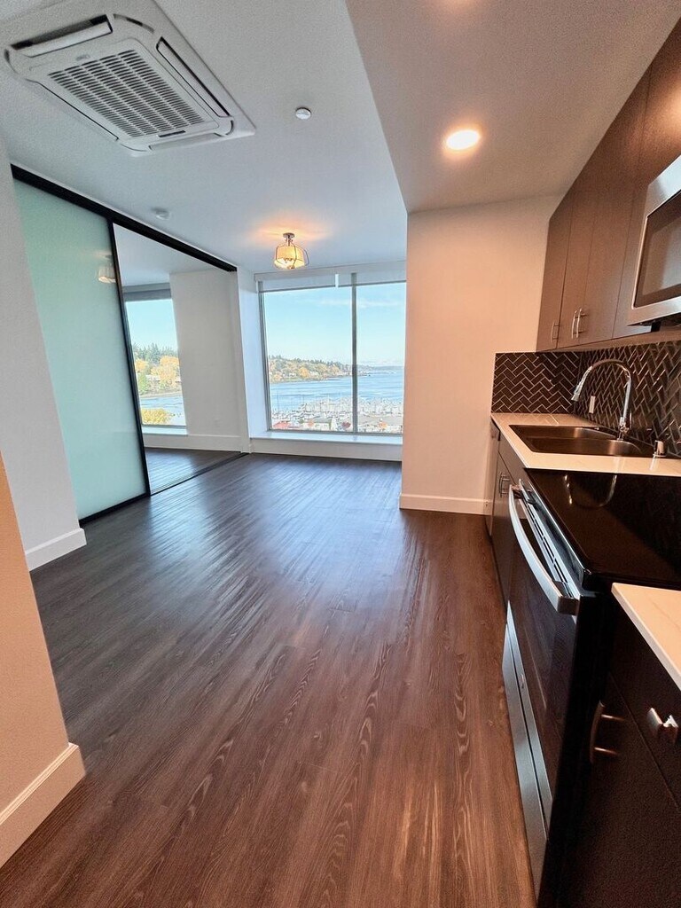 February 20, 2021The only thing good about this complex is the views. The apartments are tiny and much more than what you would pay in other cities. No pool, sauna, or jacuzzi but a decent fitness center. The kitchen cabinets are cheap and not a pleasing color. The photos they show are not what you get. No white cabinets. They are all a nasty dark gray with matching cheap dark flooring. In a place with constant rainy, cloudy weather, why decorate with dark colors? The parking is non-existent, so you are forced to ...use their expensive automated parking garage that is very slow and a maintenance nightmare. The garage is constantly requiring software updates and often a technician is required to help you causing extensive wait times. I have consistently been late and even missed appointments. A large parking lot is denied to residents and guests that is designated for a non-existent restaurant. They will fine you or tow your car if you park there so there is no guest parking except by chance availability on the street or the park. The complex is constantly under construction and is late to service residents apartments. The elevators are always under repair and often closed. The elevators and halls are not temperature controlled so you freeze. Sorry but I will not renew my lease and recommend you look for other options unless the only thing important to you is a view. The building owner is not a nice man and thinks he can lecture residents who lodge legitimate complaints.Read MoreReview from Apartments.com
