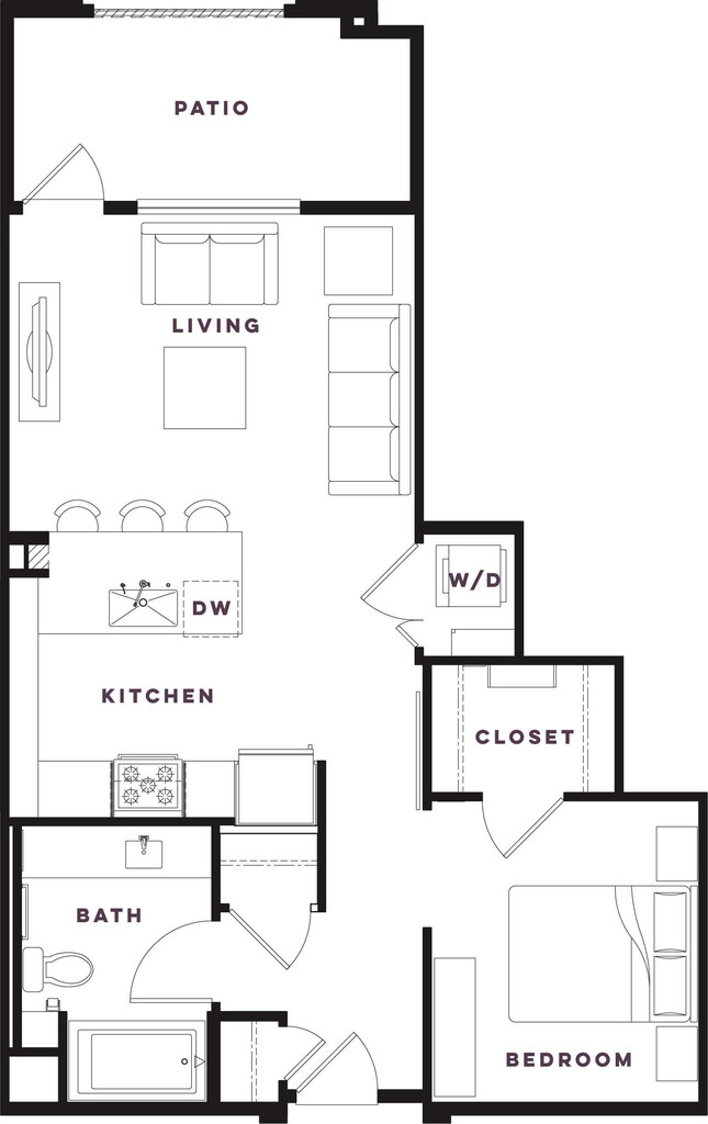 Apartment Model: The SuiteCall For RatesStudio, 1 Bath, 696 sq ftUnavailableThe Suite - Floorplan 1 1 Bedroom