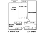 2 Beds, 1 Bath, 735 sq ftAvailable NowModel Gallery
