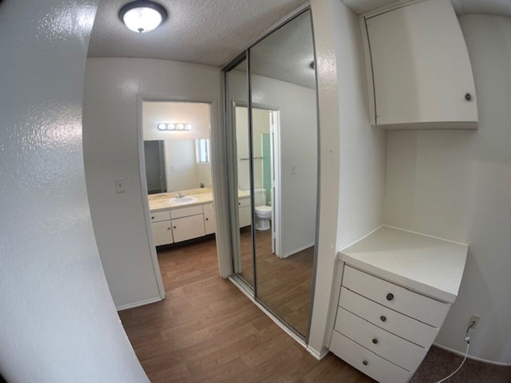Wonderful Oxnard 1 bedroom 1 bathroom large apartment with views of the courtyard and pool. Large living room with lots of natural light. Galley style kitchen with breakfast nook area and lots of cabinet space. Well sized bedroom with 2 closets and a vanity area that is adjacent to the bathtub bathroom.