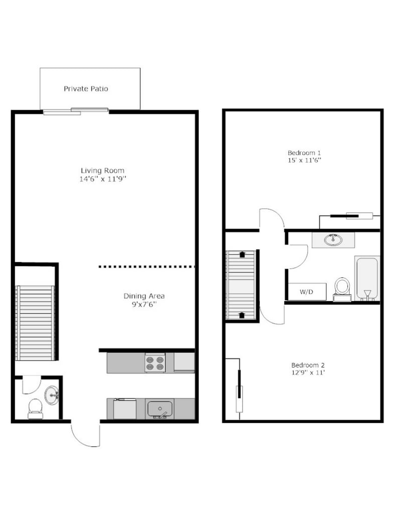 2 bed / 1.5 bath - Floorplan 1