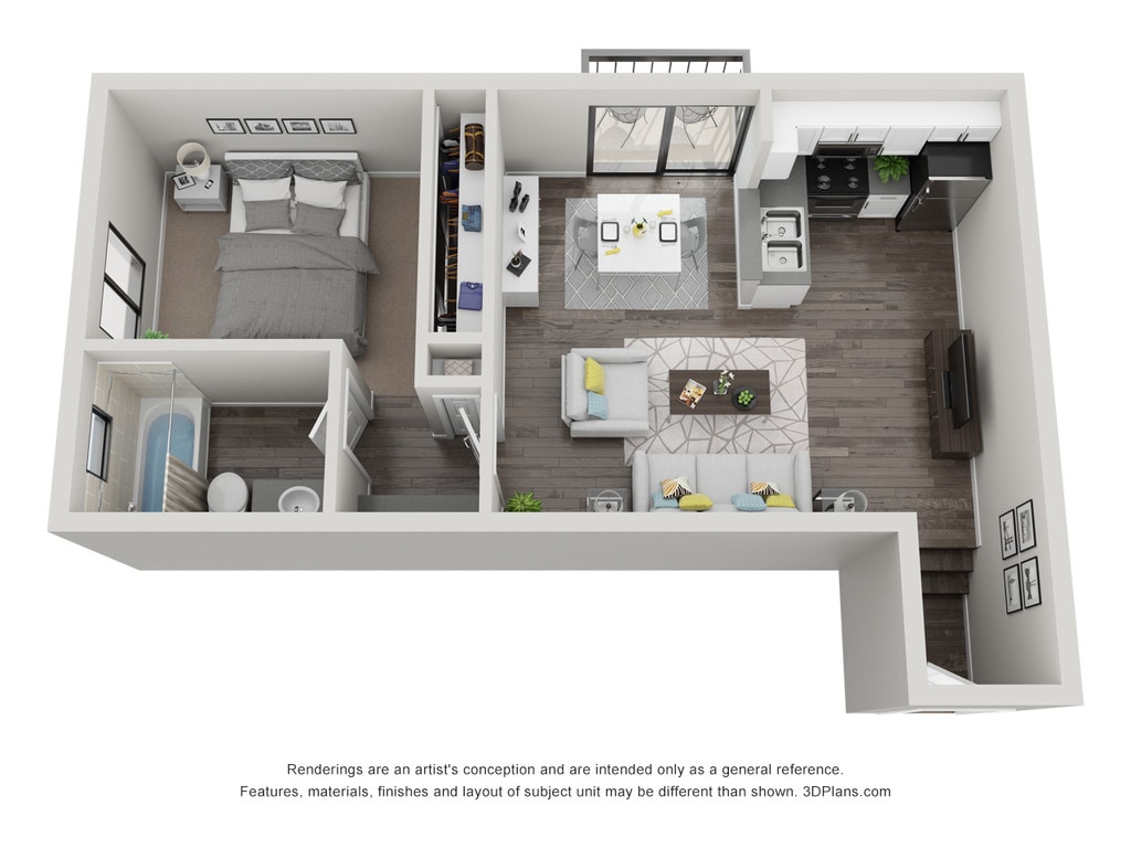 Studio, 1 Bath, 595 sq ftAvailability Details