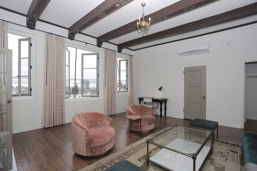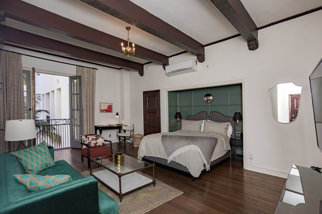 Welcome to hotel-style living in a hidden gem oasis in the Hollywood Hills.This historic haven offers elevated, flexible living with the ease of hotel-style amenities. Behind secure gates, lush courtyards and calming water features create a peaceful retreat designed for comfort, focus, and quiet luxury.Enjoy multiple garden spaces perfect for both remote work and relaxation, a rooftop with iconic views of the Hollywood Sign, and a grand piano lobby featuring wine nights and live music. Complimentary continental breakfast and coffee are served daily from 7:30 a.m. to noon.Amenities include a 24/7 fitness center, a year-round heated pool with towel service, a guest laundry room with detergent, and an ice machine.For added ease, our dedicated security and resident services team is always available to assist.This is refined, fully appointed living in one of LAs most iconic neighborhoods.