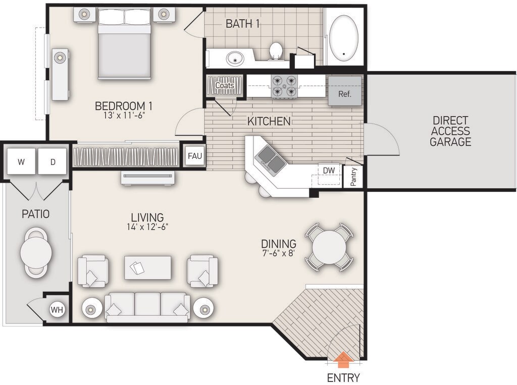 1 Bed, 1 Bath, 737 sq ftAvailable NowModel Gallery