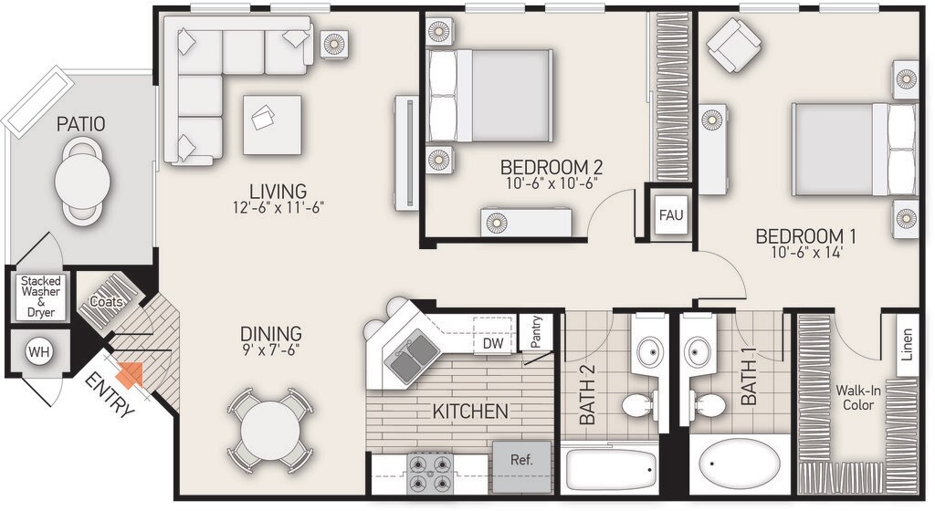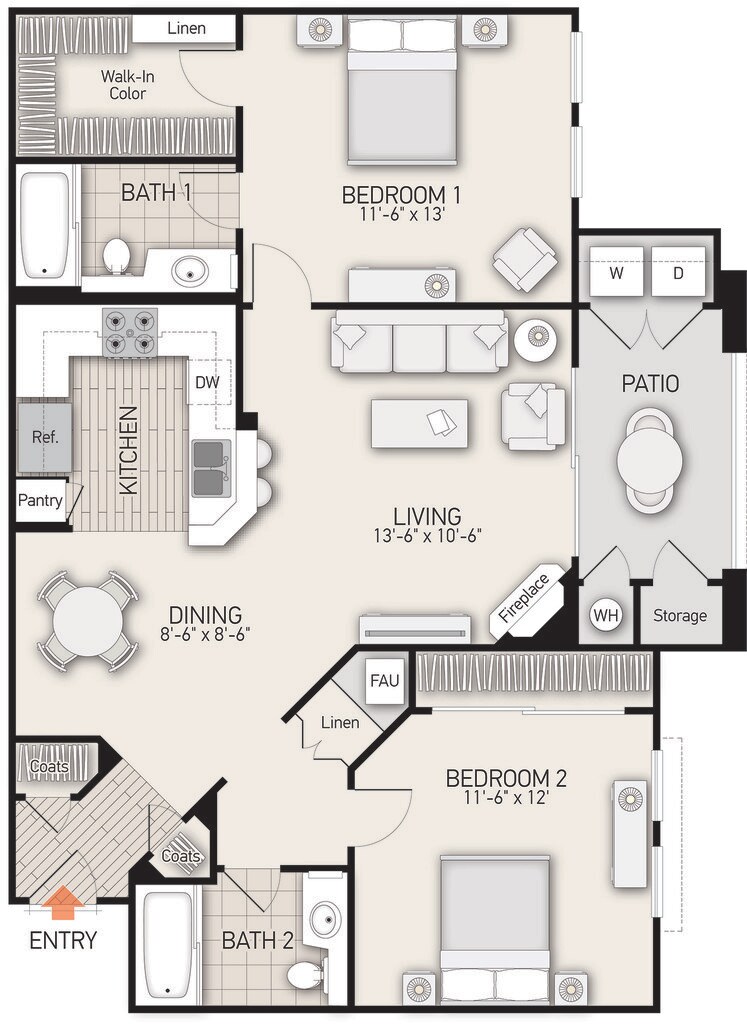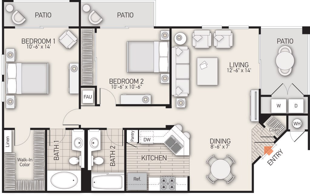 2 Beds, 2 Baths, 1036 sq ftAvailable NowModel Gallery