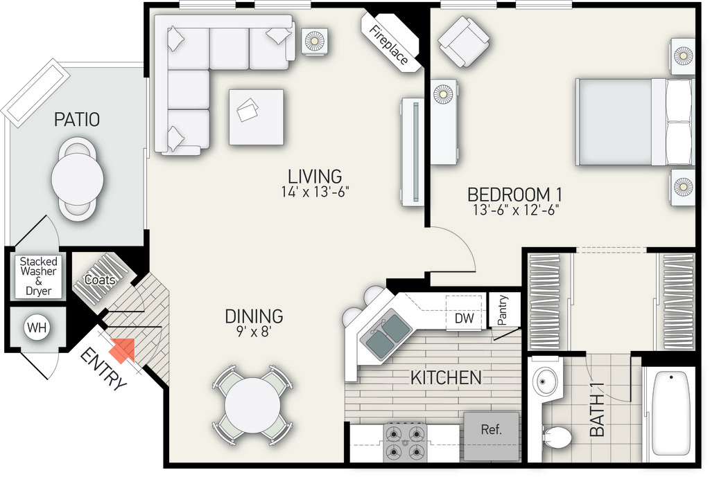 1 Bed, 1 Bath, 802 sq ftAvailable NowLargest 1 BedroomThis is the largest 1 Bedroom at this PropertyModel Gallery