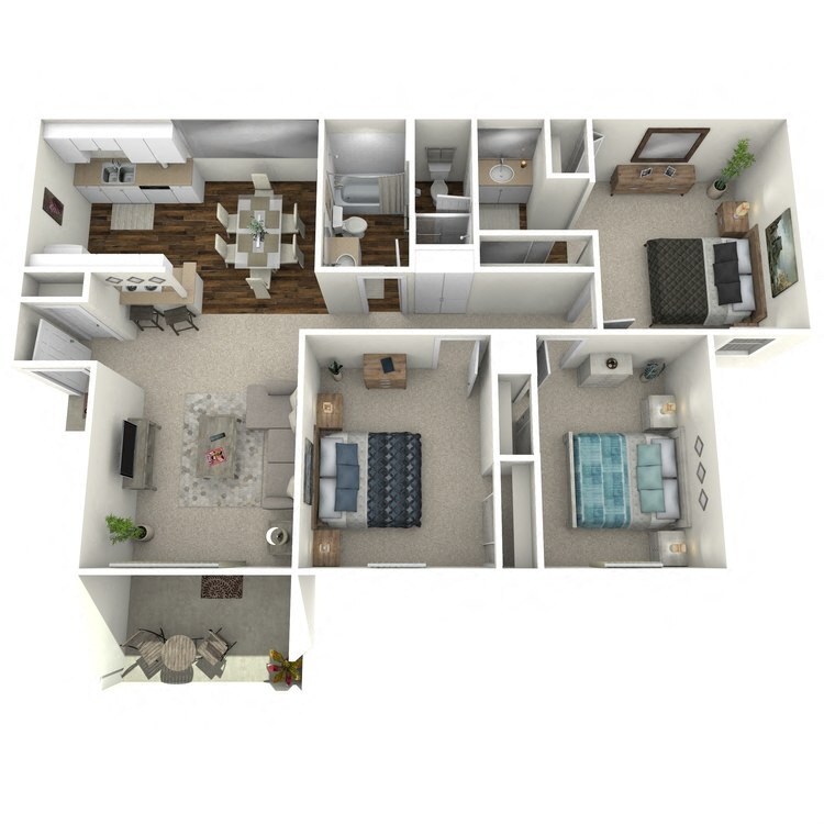 Apartment Model: Three Bed Two Bath Plan D3 Bedroom, 2 Bath, 1049 sq ftAvailable December 1, 2025![]()