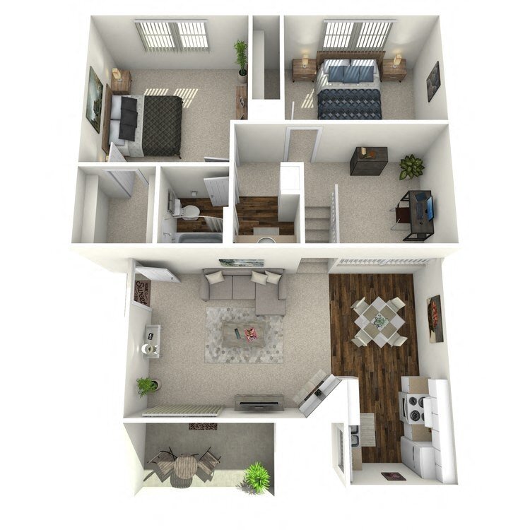 Three Bed Two Bath Plan D - Floorplan 1 Apartment Unit: 112Apartment Model: Three Bed Two Bath Plan D3 Bedroom, 2 Bath, 1049 sq ftAvailable December 1, 2025