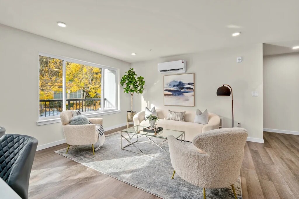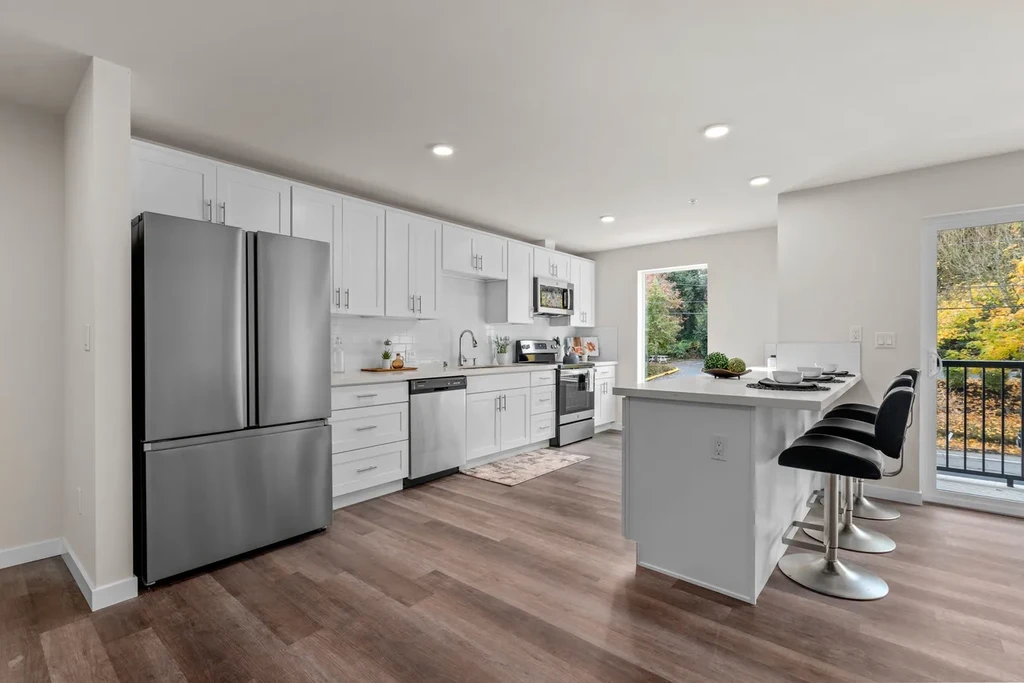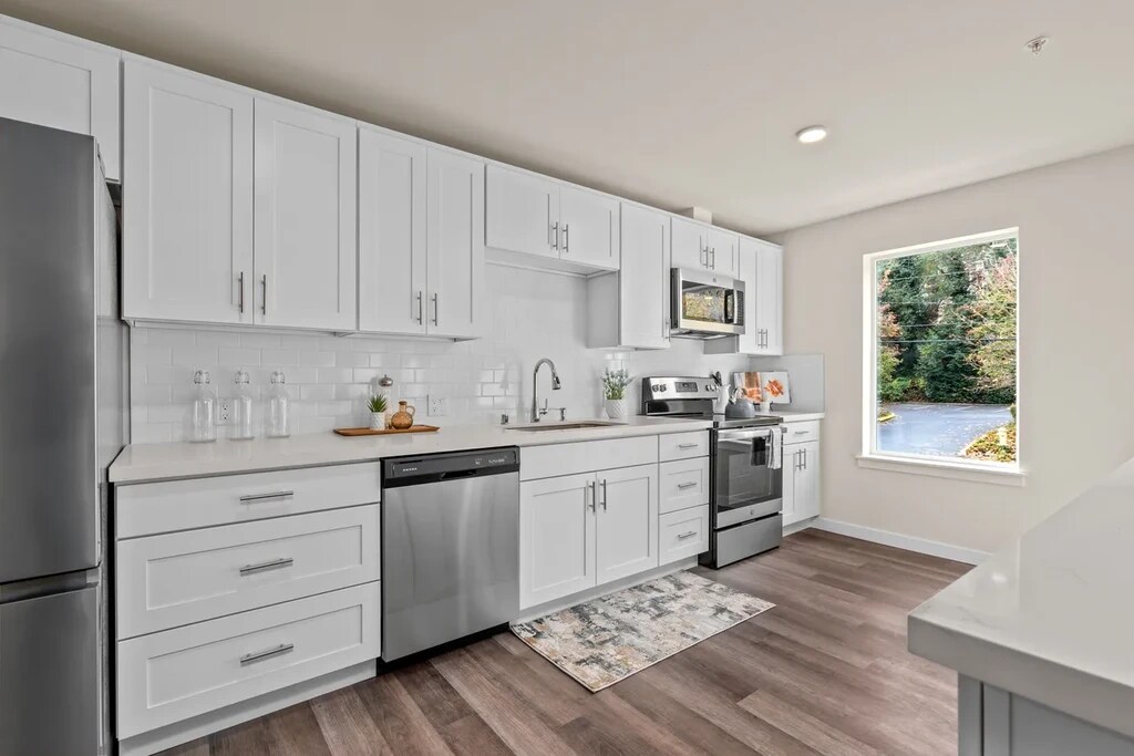 In the heart of Woodinville, discover a newly developed way of living. Villa Elements offers many nearby amenities, walking distance to Woodinville town center, close proximity drive to the Woodinville vineyard, plenty of shops, restaurants and coffee shops for each of your preferences. Generous floor plans, open concept living space, bright and airy units, with natural lights flowing in, modern touches throughout the unit, kitchens with high-end SS-appliances, quartz counter-tops, hardwood throughout each unit, full size w&d, mini ac splits in every unit, each unit with master suites with walk in closets, connected bathroom suites. Gated garage, 24/7 security monitoring, pet friendly complex.