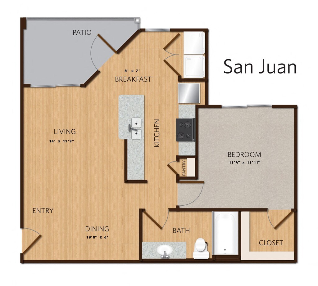 1 Bed, 1 Bath, 588 sq ftAvailable NowModel Gallery