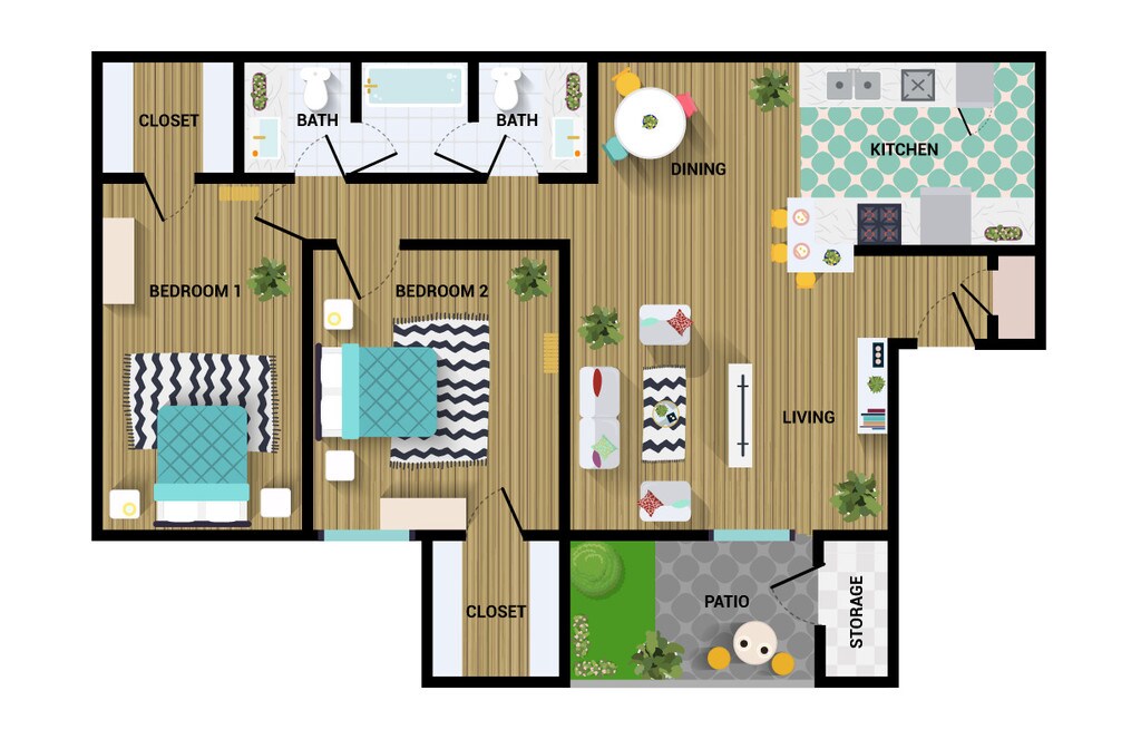 725 Sq Feet - Floorplan 2 2 Bedrooms
