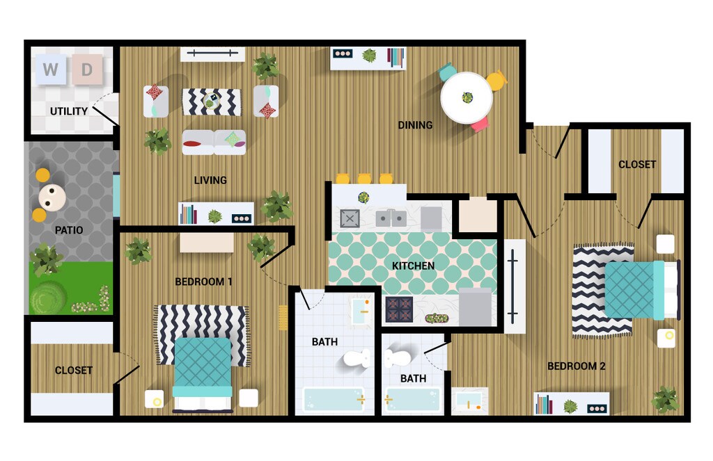 2 Beds, 2 Baths, 1000 sq ftLargest 2 BedroomThis is the largest 2 Bedroom at this PropertyModel Gallery