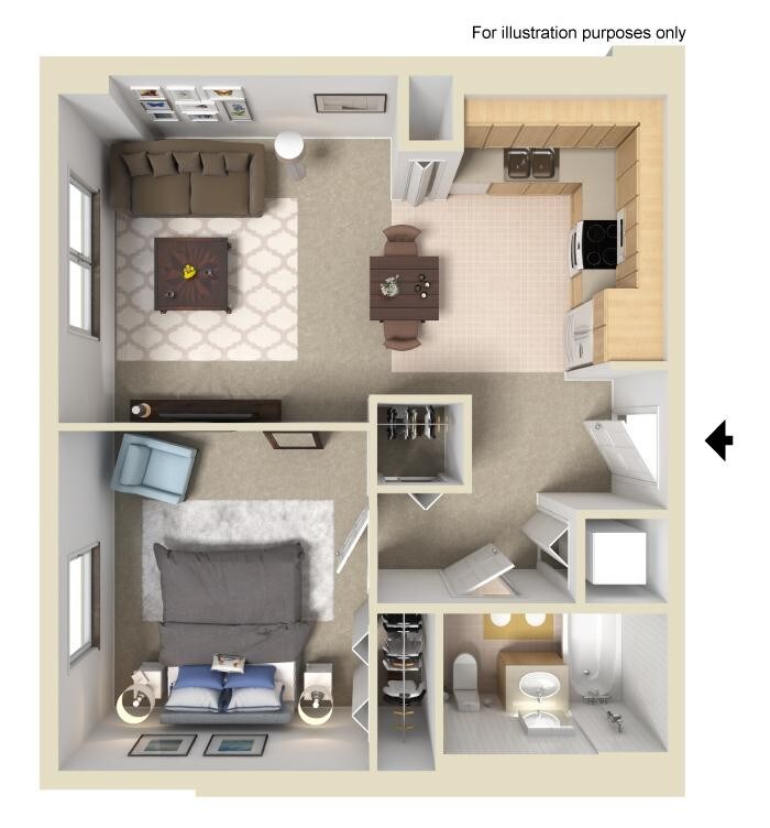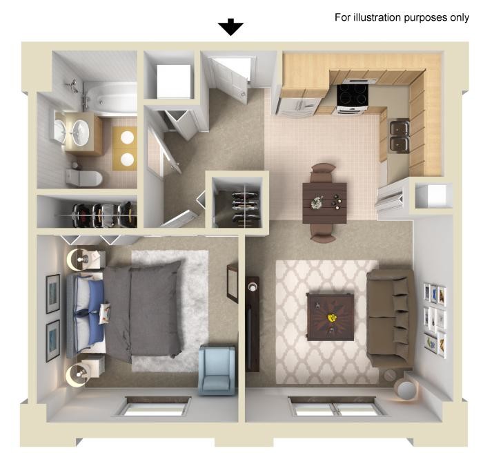 1 Bed, 1 Bath, 600 sq ftModel Gallery