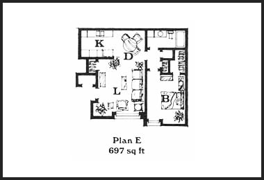 1 Bed, 1 Bath, 692-697 sq ftAvailable NowModel Gallery