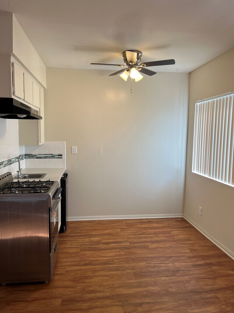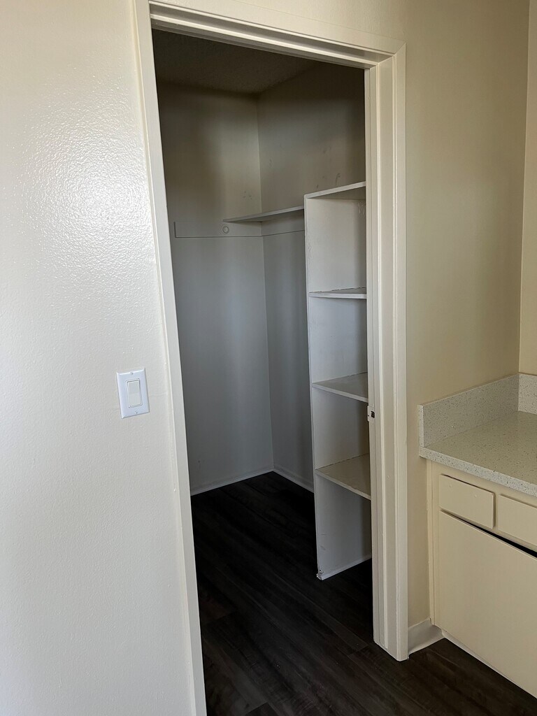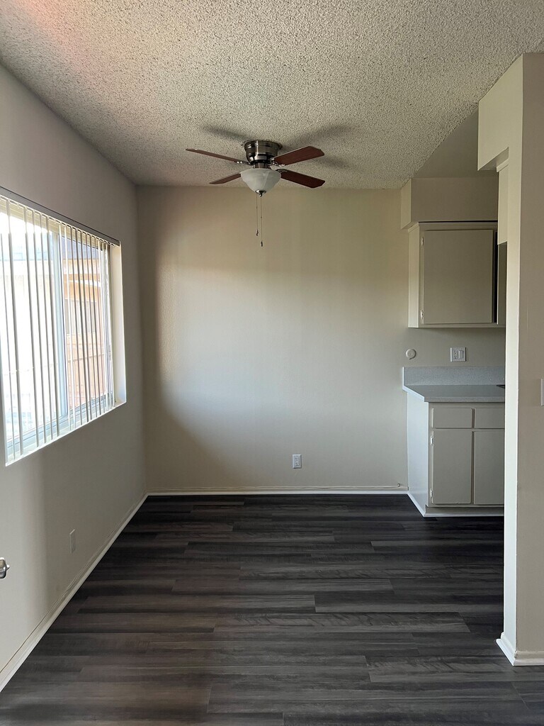 Spacious Quiet Apt. Loads of kitchen cabinet space. Hardwood flooring. Pool and laundry room. Gate building and carport parking. See Res Mgr in Apt 1. for applications.