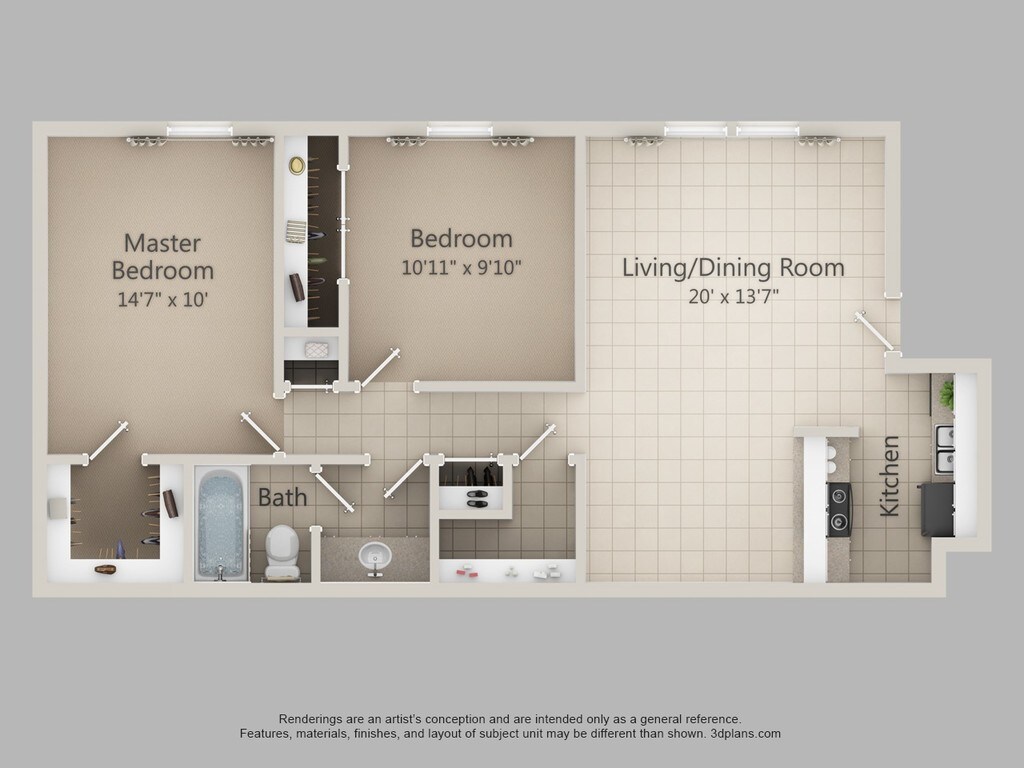2 Beds, 1 Bath, 850 sq ftAvailable NowCheapest 2 BedroomThis is the cheapest 2 Bedroom at this PropertyModel Gallery