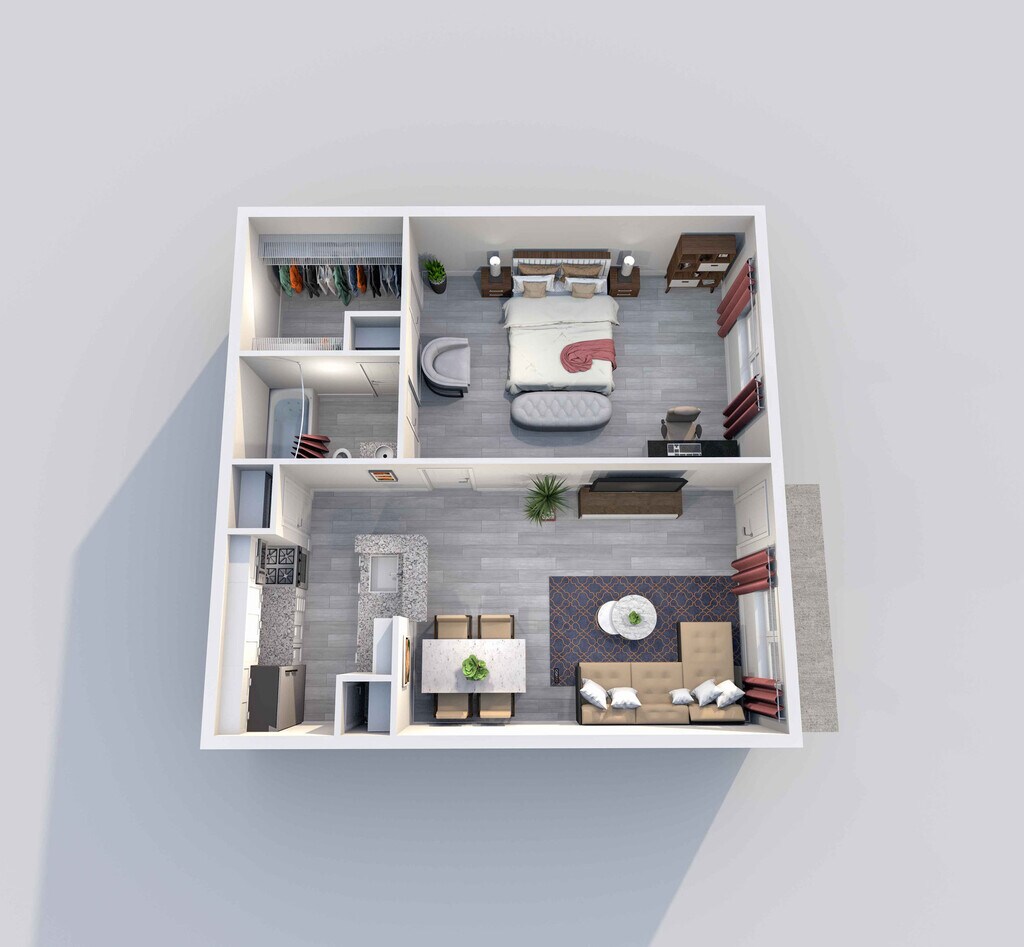 1 Bed, 1 Bath, 615 sq ftModel Gallery