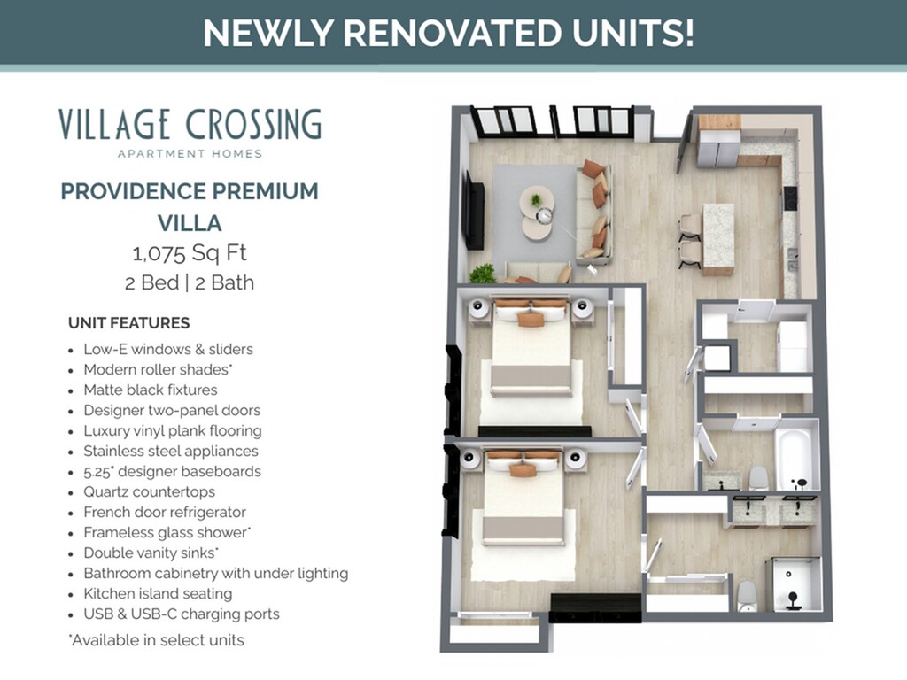 2 Beds, 2 Baths, 1075 sq ftModel Gallery