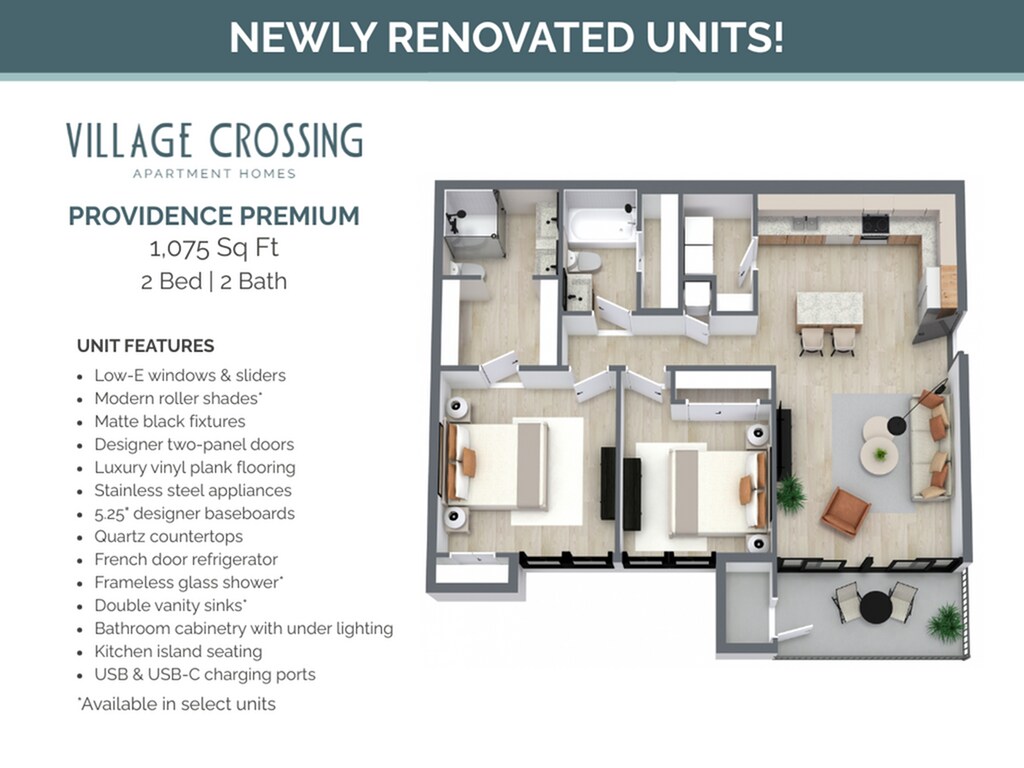 2 Beds, 2 Baths, 1075 sq ftAvailable Dec 1Model Gallery