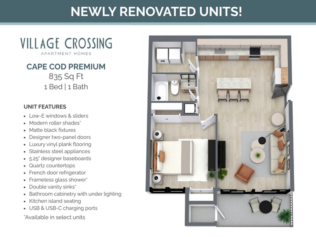 Apartment Model: Cape Cod PremiumFrom $2,1611 Bedroom, 1 Bath, 835 sq ftAvailable December 1, 2025![]()