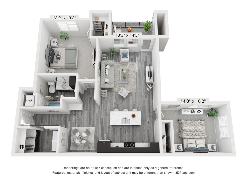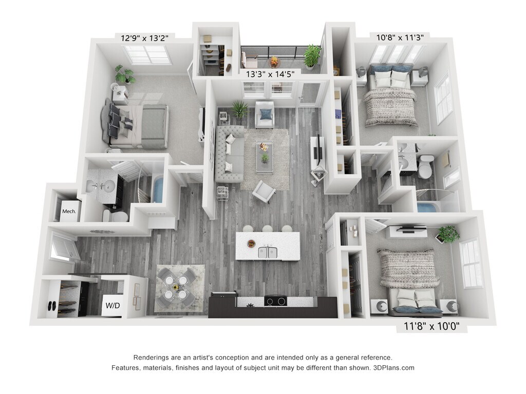 2 Beds, 2.5 Baths, 1273 sq ftLargest 2 BedroomThis is the largest 2 Bedroom at this PropertyModel Gallery