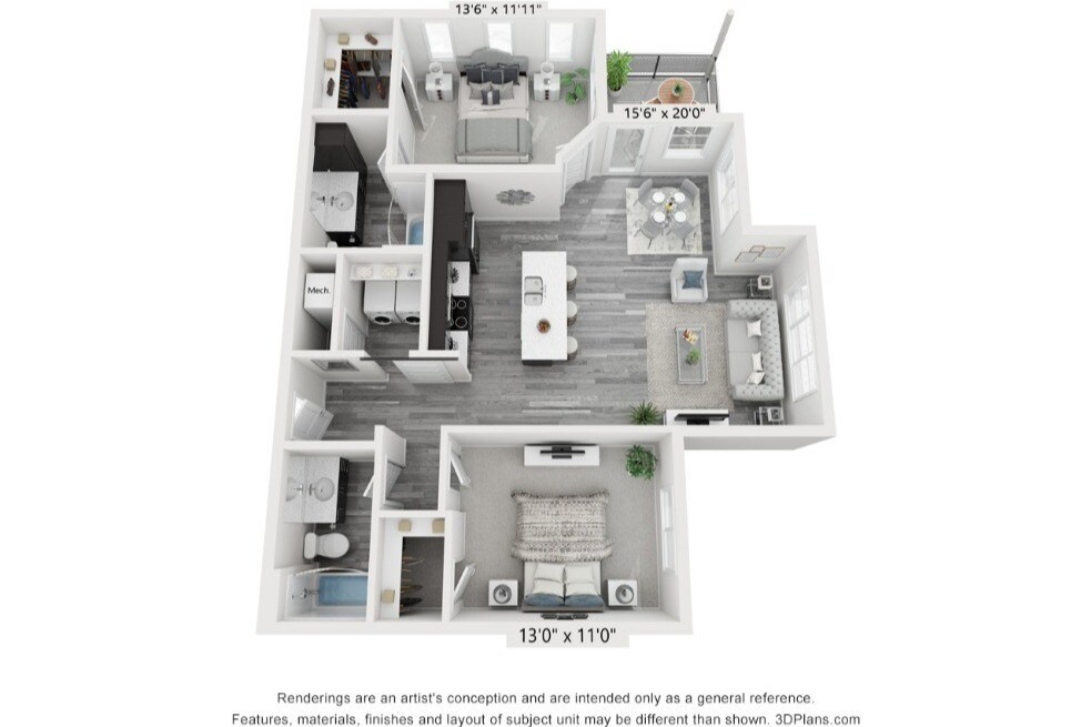 Apartment Model: Two Bedroom Two BathFrom $1,8502 Bedroom, 2 Bath, 1077 sq ftAvailable Now![]()