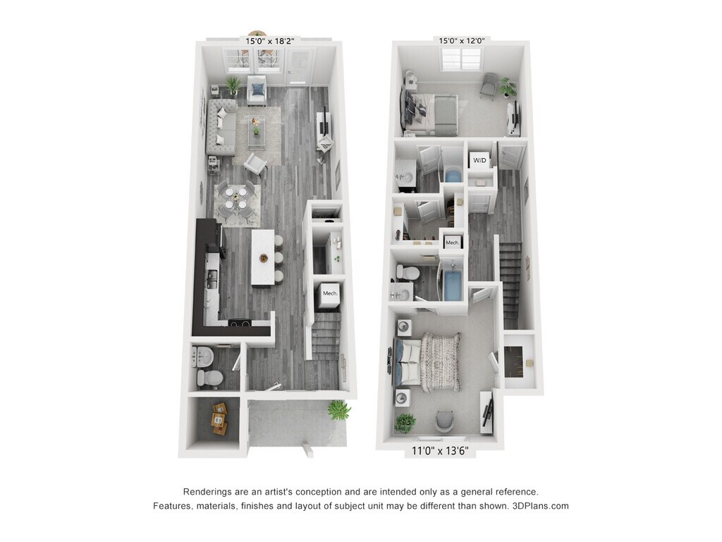 Apartment Model: Two Bedroom, Two & a Half Bath TownhomeCall For Rates2 Bedroom, 2.5 Bath, 1273 sq ftUnavailable![]()