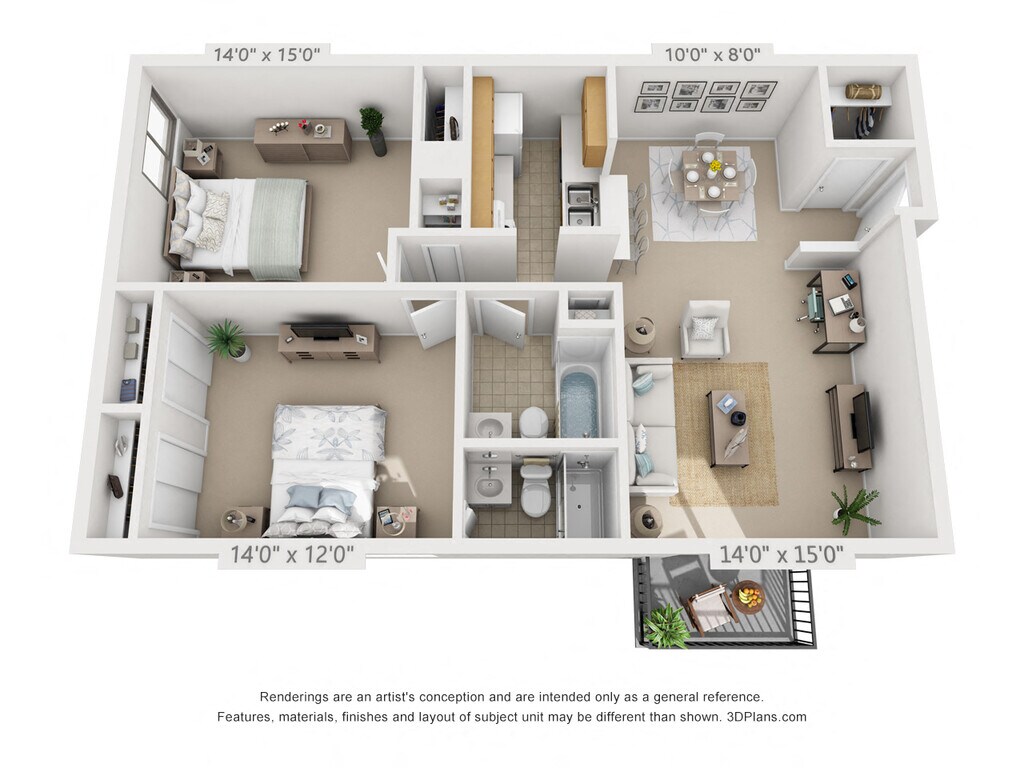 2 Beds, 1 Bath, 882 sq ftAvailable NowModel Gallery