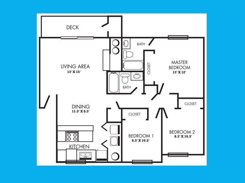 Apartment Model: Two Bedroom, Two BathCall For Rates2 Bedroom, 2 Bath, 913 sq ftUnavailableTwo Bedroom, Two Bath - Floorplan 1 3 Bedrooms