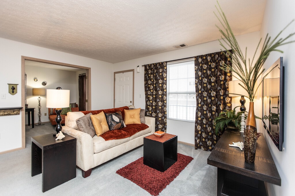 Village Gate Apartments offer state of the art amenities amidst a beautiful country setting near Columbus in Reynoldsburg, OH. These spacious one and two bedroom air conditioned layouts feature easy-to-decorate living and dining areas. The large closets will handle your roughest storage problems, and there is high quality carpeting and tile everywhere you'll walk. Also, you will enjoy your apartment home's extra large designer kitchen which provides plenty of cabinet and counter space as well as a roomy dining area, efficient electric appliances that include a full size range, dishwasher, washer and dryer or washer/dryer hook-up (select units), and double stainless steel sink with disposal. Garages are available. We have a beautiful swimming pool and so much more. Both your comfort and your pocket book will be improved by your home's energy efficient heat pump system, which provides central heating and cooling. Our on site professional management is your guarantee of the best service and that you will be surrounded by meticulously maintained grounds. Located within Licking Heights School System. *Highest rent price represents a renovated unit