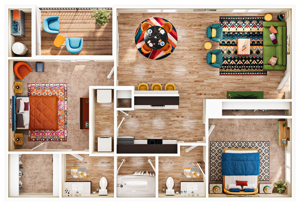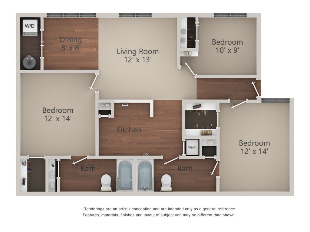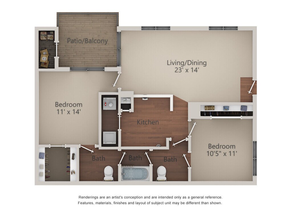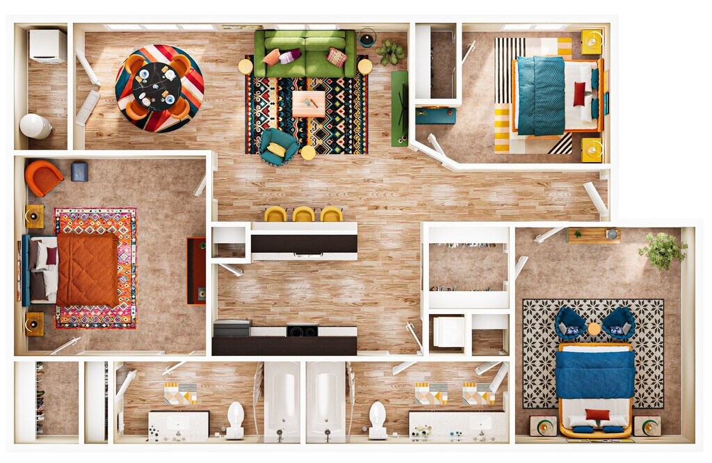 3 Beds, 2 Baths, 1020 sq ftModel Gallery