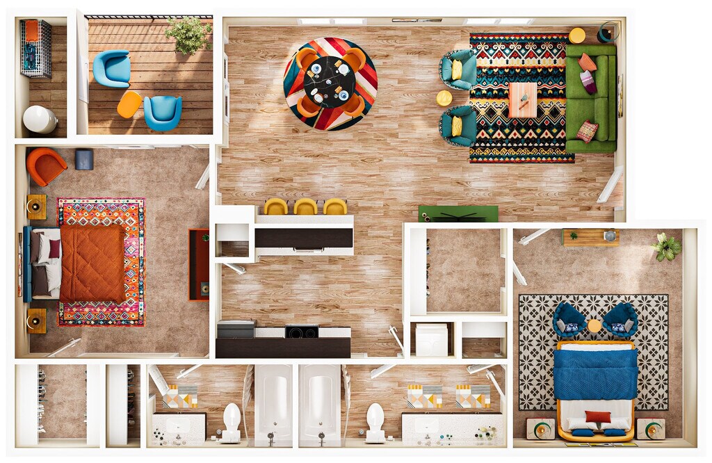 2 Beds, 2 Baths, 892 sq ftModel Gallery