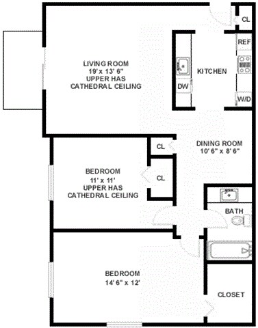 Apartment Model: 2 Bedroom UpperFrom $1,3752 Bedroom, 1 Bath, 930 sq ftAvailable Now![]()