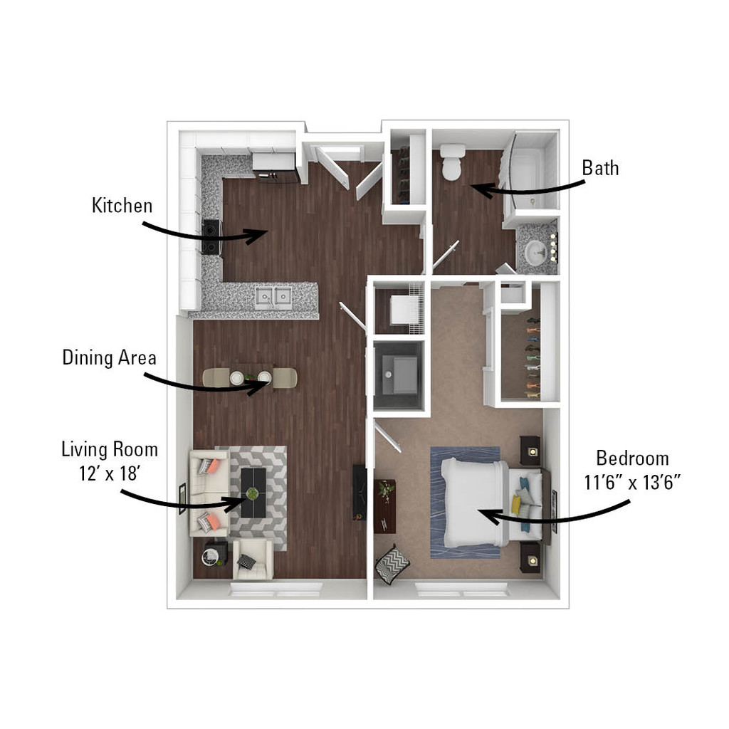 Apartment Model: 1 Bedroom, 1 Bath 712 sq. ft.$1,6501 Bedroom, 1 Bath, 712 sq ftAvailable January 1, 2026![]()