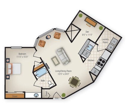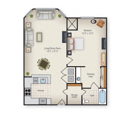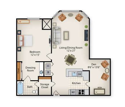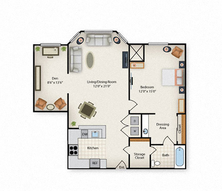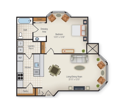 Apartment Model: The SwanCall For Rates1 Bedroom, 1 Bath, 868 sq ftUnavailableThe Swan - Floorplan 1